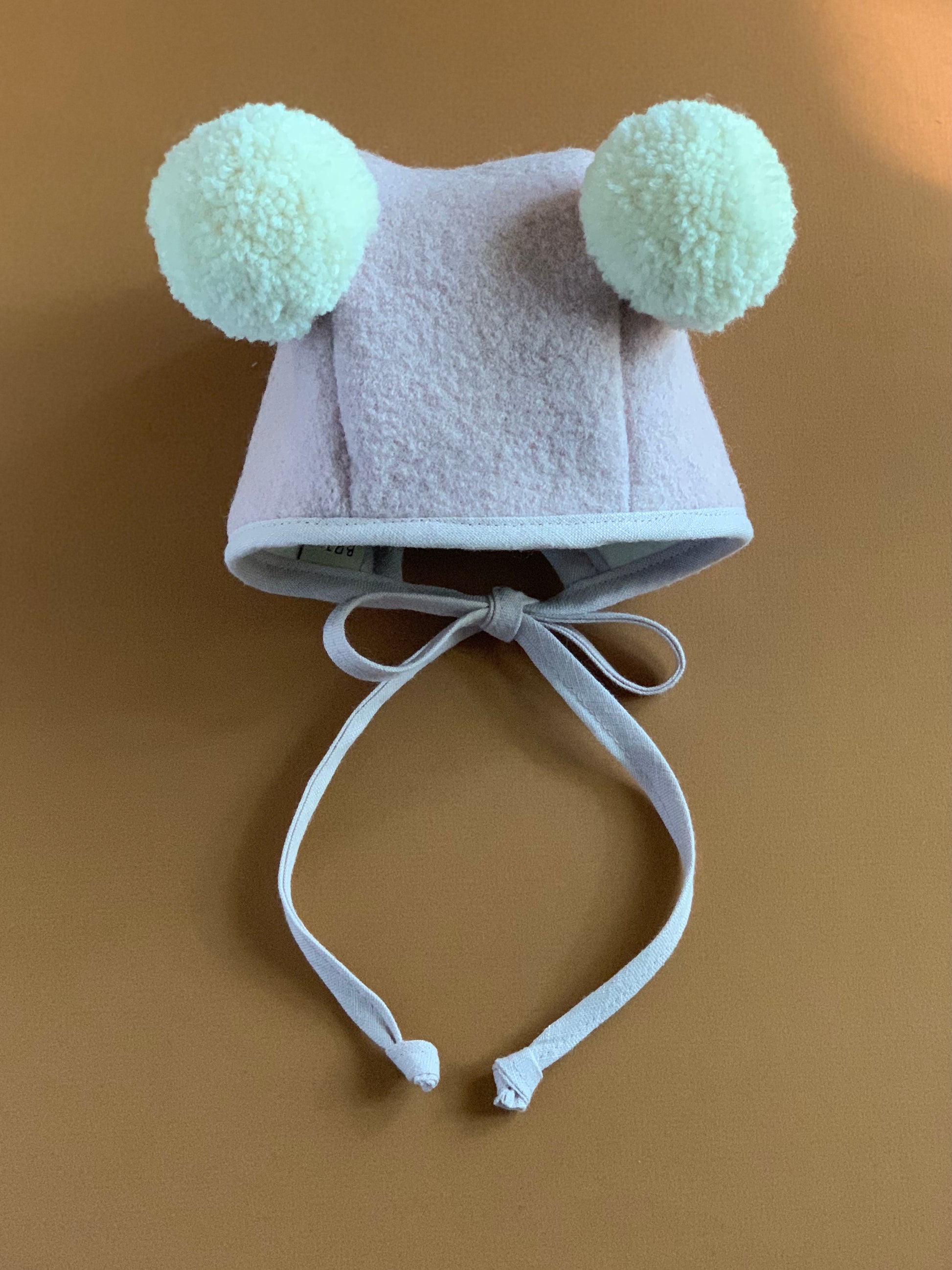 *thumbnail image shows the bonnet with the double Vanilla pom add on. To order the bonnet on the image you will have to select the add on from the drop down menus provided*