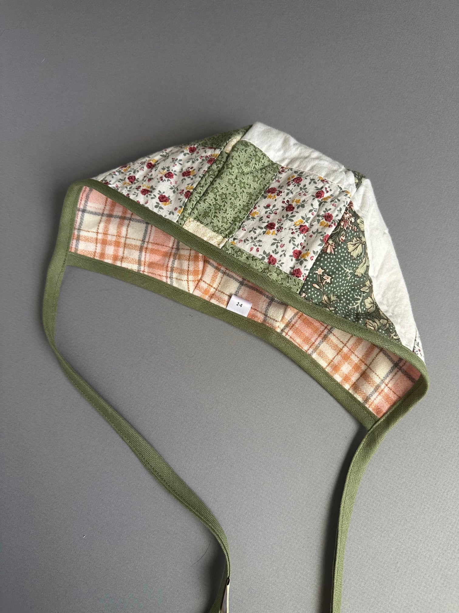 This listing is for a basic brimless bonnet made from an vintage quilt that has been salvaged and turned in to a sweet little hat for your kiddo. Lined with 100% cotton flannel.