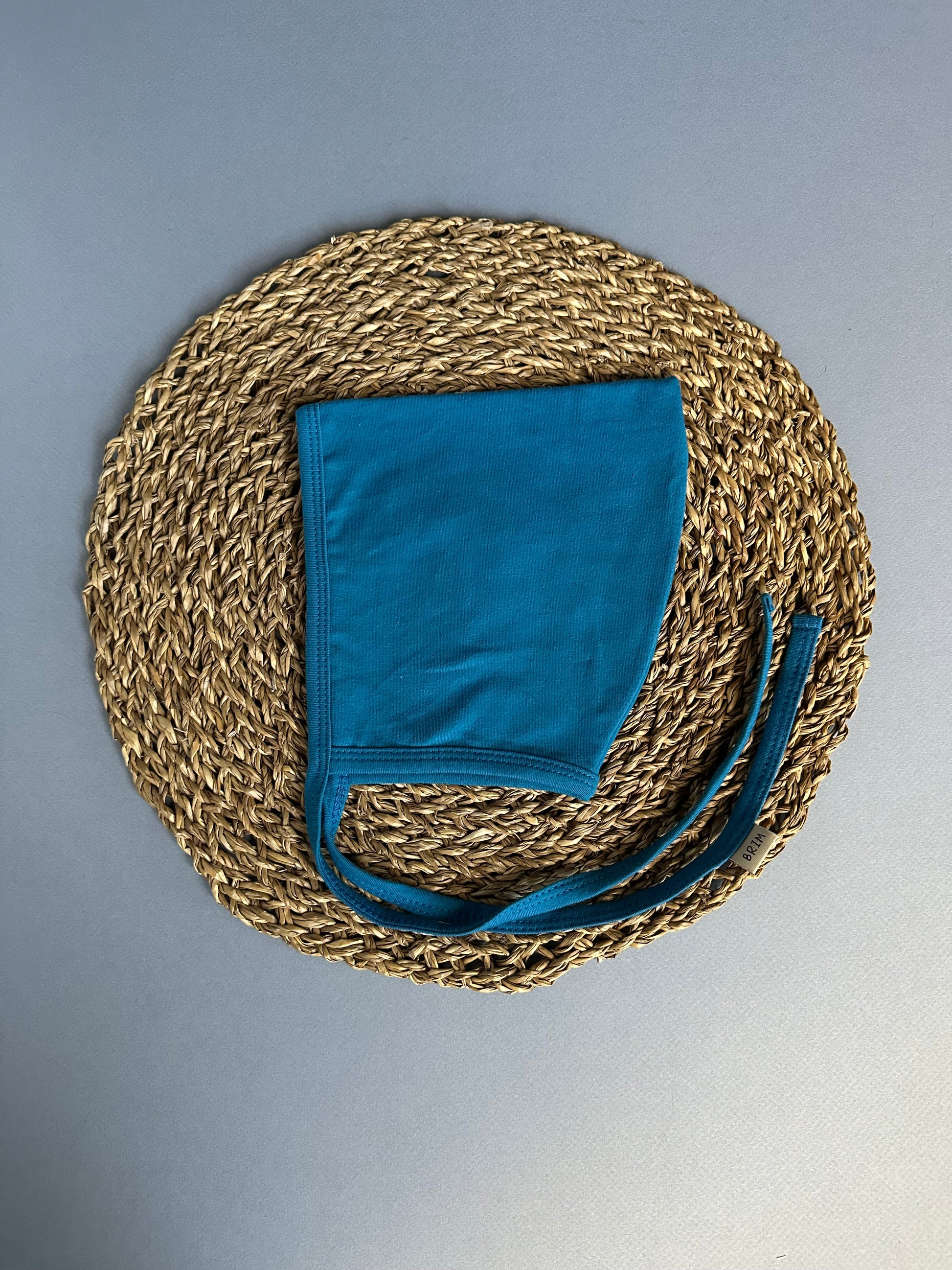 The pixie style is made from a cotton knit jersey with just enough stretch to comfortably frame those sweet baby cheeks. Bonnets are available from newborn all the way to a size four.
