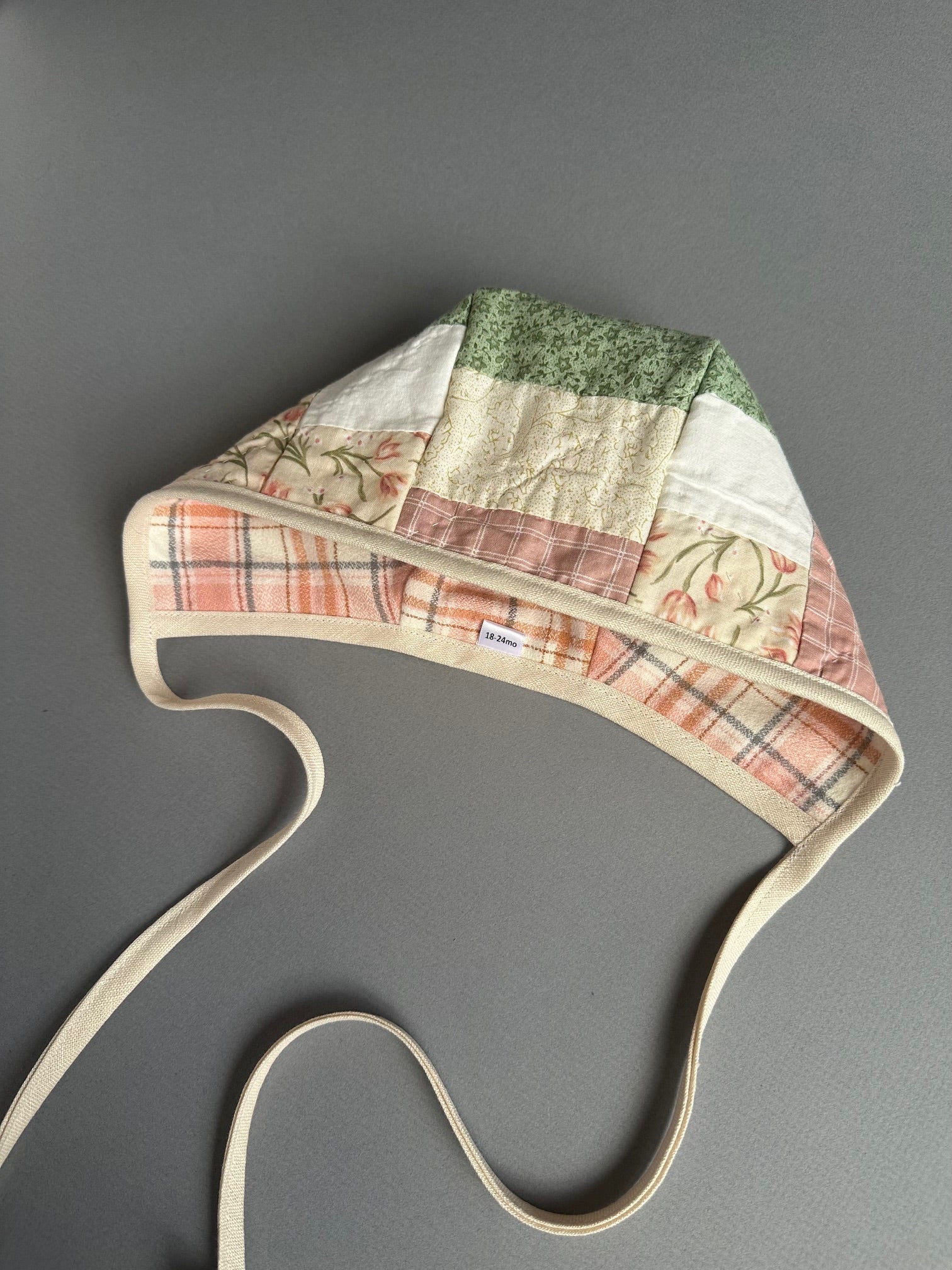 This listing is for a basic brimless bonnet made from an vintage quilt that has been salvaged and turned in to a sweet little hat for your kiddo. Lined with 100% cotton flannel.